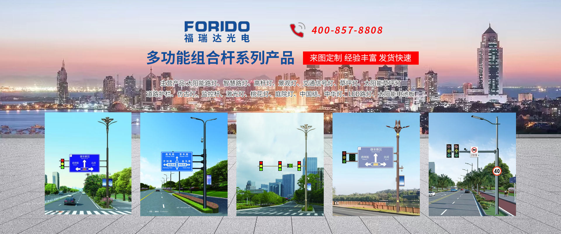揚(yáng)州福瑞達(dá)光電科技有限公司位于淮左名都?xì)v史文化名城、中國路燈制造基地?fù)P州市北郊菱塘工業(yè)園,公司占地面積76000平方米,注冊(cè)資金10518萬元,擁有高級(jí)技術(shù)嫻熟的員工280多人,擁有大型折彎機(jī)、激光切割、數(shù)控注塑機(jī)、壓鑄機(jī)、自動(dòng)埋弧焊、氣焊、彩色粉末靜電噴塑等大型自動(dòng)化設(shè)備,我公司是一家集設(shè)計(jì)、研發(fā)、生產(chǎn)、銷售、施工安裝服務(wù)為一體的戶外交通照明產(chǎn)品制造商,主要生產(chǎn)智慧路燈、太陽能路燈、LED路燈、高桿燈、景觀燈、交通信號(hào)燈、交通標(biāo)志牌、通信鐵塔、路跨鋼結(jié)構(gòu)、公交站臺(tái)、太陽能光伏組件、景點(diǎn)亮化、樓宇亮化工程的設(shè)計(jì)施工等。公司秉承開拓創(chuàng)新、銳意進(jìn)取、精誠服務(wù)的企業(yè)精神,堅(jiān)持以“誠信為本、技術(shù)為先、服務(wù)是金”的合作理念,我們憑借先進(jìn)的制造工藝、優(yōu)質(zhì)的產(chǎn)品質(zhì)量、合理的市場價(jià)格和完善的售后服務(wù)贏得了廣闊的市場和客戶的信賴?! ∥夜疽淹ㄟ^ISO9001質(zhì)量體系認(rèn)證、ISO14001環(huán)境管理體認(rèn)證,CQC產(chǎn)品認(rèn)證,中國節(jié)能產(chǎn)品認(rèn)證,通過“CCC”強(qiáng)制性產(chǎn)品認(rèn)證,具有市政總承包,照明,交安,設(shè)計(jì)等資質(zhì)···